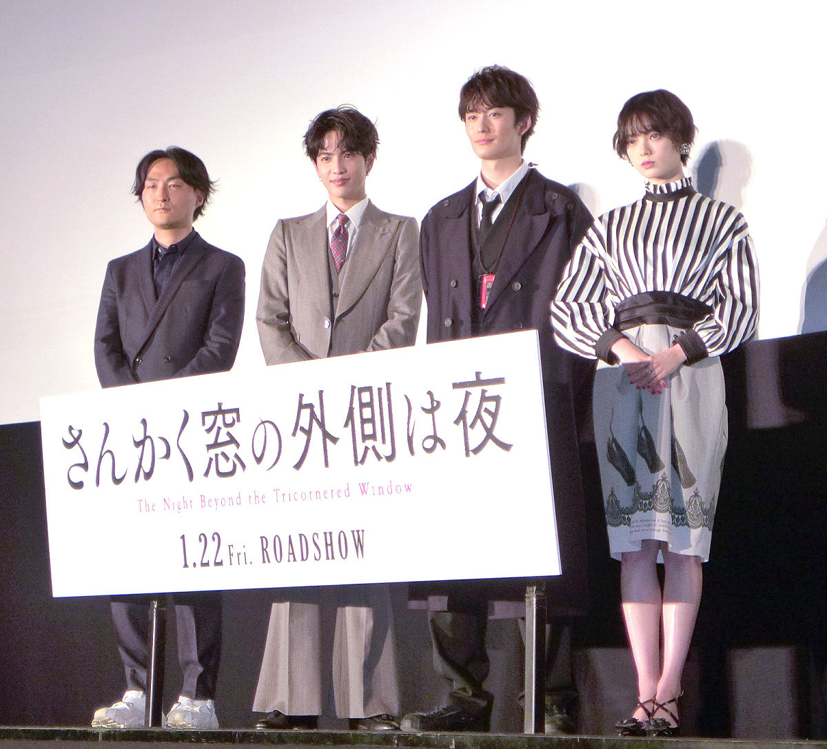 俳優の岡田将生(31)、志尊淳(25)、元欅坂46で女優の平手友梨奈(19)が21日、都内で映画「さんかく窓の外側は夜」(22日公開、森ガキ侑大監督)の公開前夜祭舞台挨拶を行った。 昨年10月に