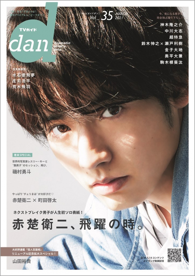 俳優の赤楚衛二が23日発売の『TVガイドdan vol.35』(東京ニュース通信社)の表紙&グラビアに登場している。赤楚にとって、人生初の雑誌ソロ表紙となる。 “チェリまほ”ことドラマ『30歳ま