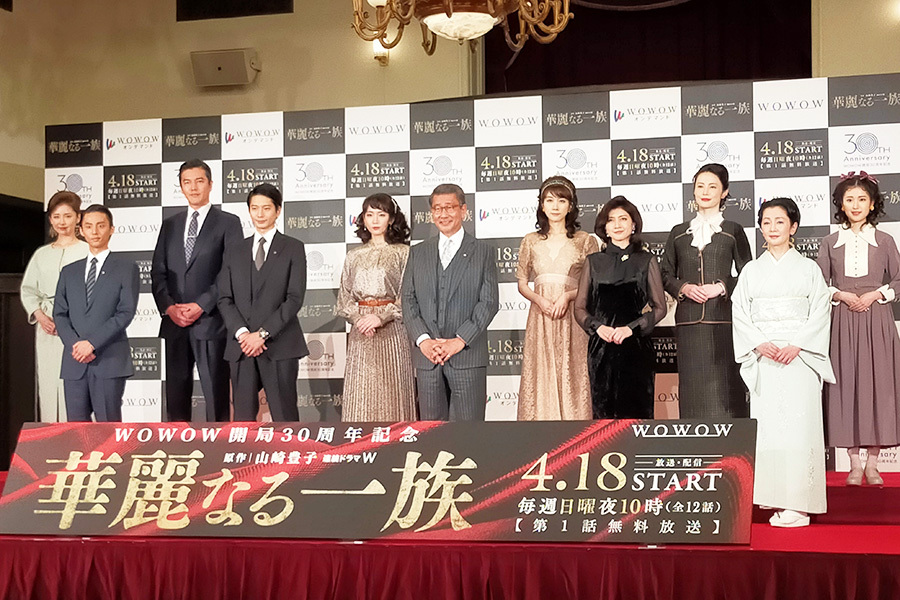 WOWOW開局30周年記念『連続ドラマW 華麗なる一族』が、4月18日から放送。公開を記念して、東京都内で主演の中井貴一をはじめキャスト11名による記者会見が4月6日におこなわれた。山崎豊子の小説
