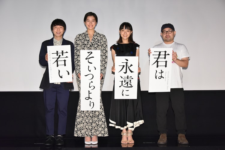 「君は永遠にそいつらより若い」の特別先行上映会が本日8月30日に東京・テアトル新宿で行われ、キャストの佐久間由衣、奈緒、小日向星一、監督の吉野竜平が舞台挨拶に登壇した。津村記久子の同名小説をもとに