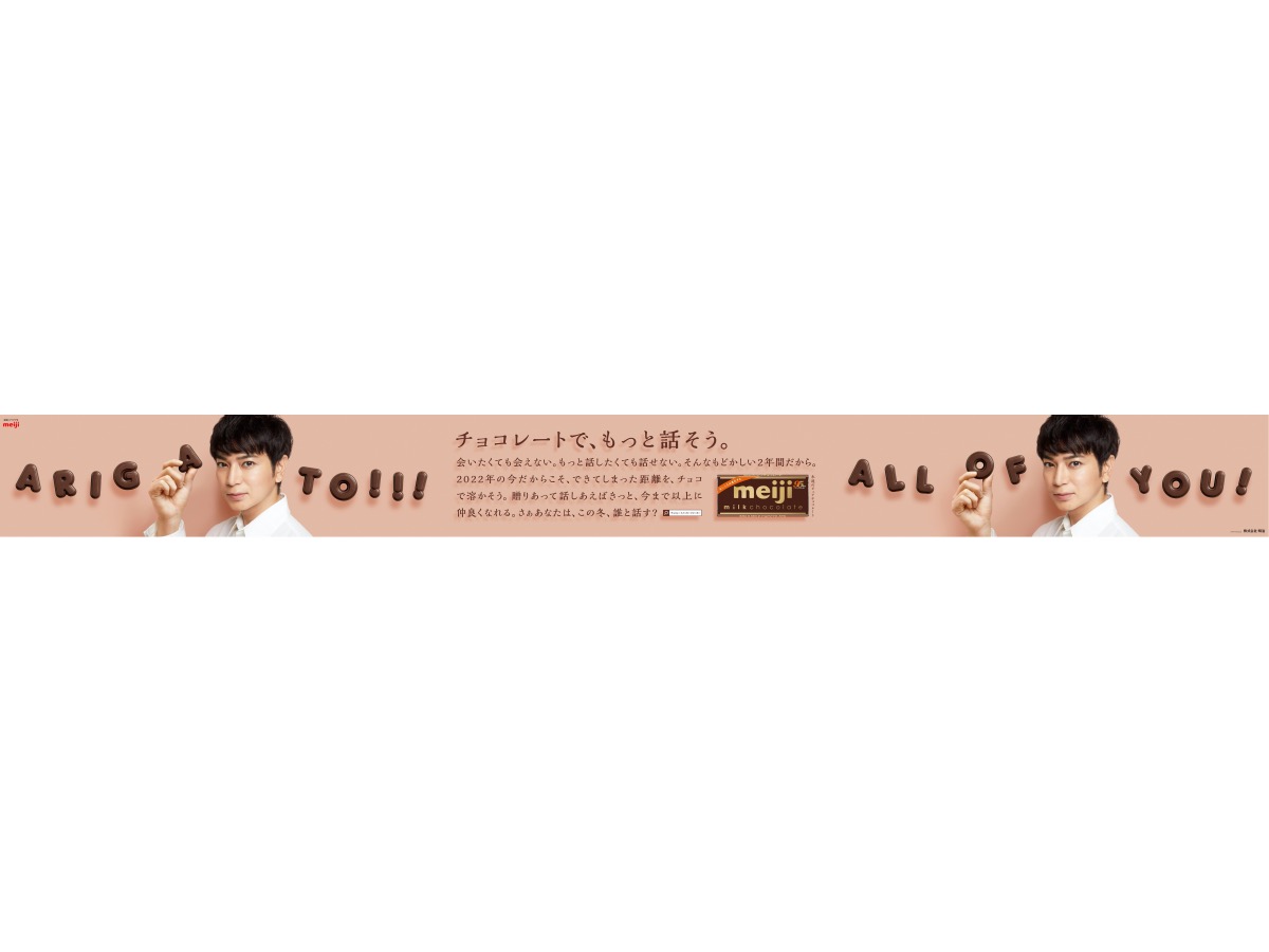 松本潤がイメージキャラクターを務める『明治ミルクチョコレート』のバレンタインに向けた広告が、2月7日より期間限定で渋谷駅にて掲出される。 今回掲出される広告では、松本が過去最大級となる全長21.