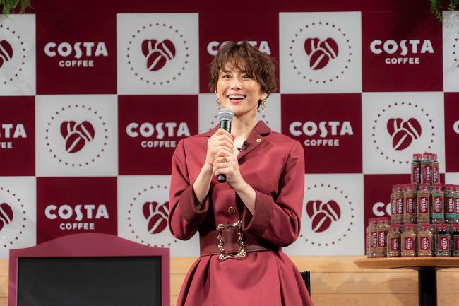 女優の米倉涼子が出演する日本コカ・コーラのコスタコーヒーの新CM「おいしいコーヒーは好きですか?」篇が、3月21日(月)より全国で放送される。これに先立ち、米倉が3月16日に都内で行われた「コスタコー