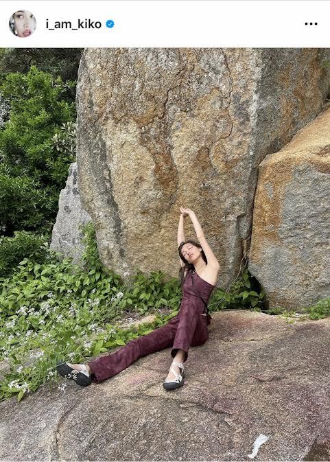 モデルで女優の水原希子が19日に自身のインスタグラムを更新し、スタイルの良さを強調するセットアップ姿を公開した。 水原は、ボルドー色の腹チラセットアップを身にまとい、自然の中で撮影されたショット