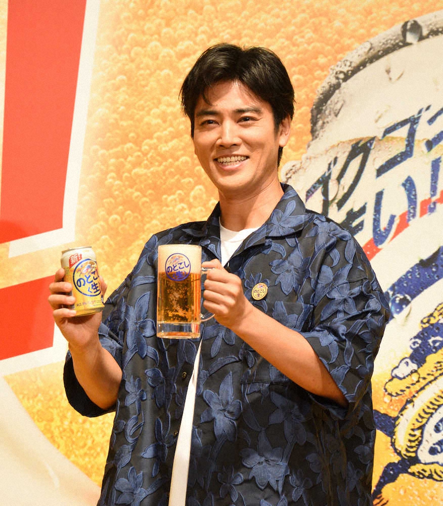 俳優の桐谷健太(42)が20日、都内で「今日もスカッとサイコーだ!新『のどごし<生>』完成発表会」に出席した。 深い青の柄シャツに白Tシャツと爽やかな夏らしい出で立ちで登場した桐谷。「ジャパンビ