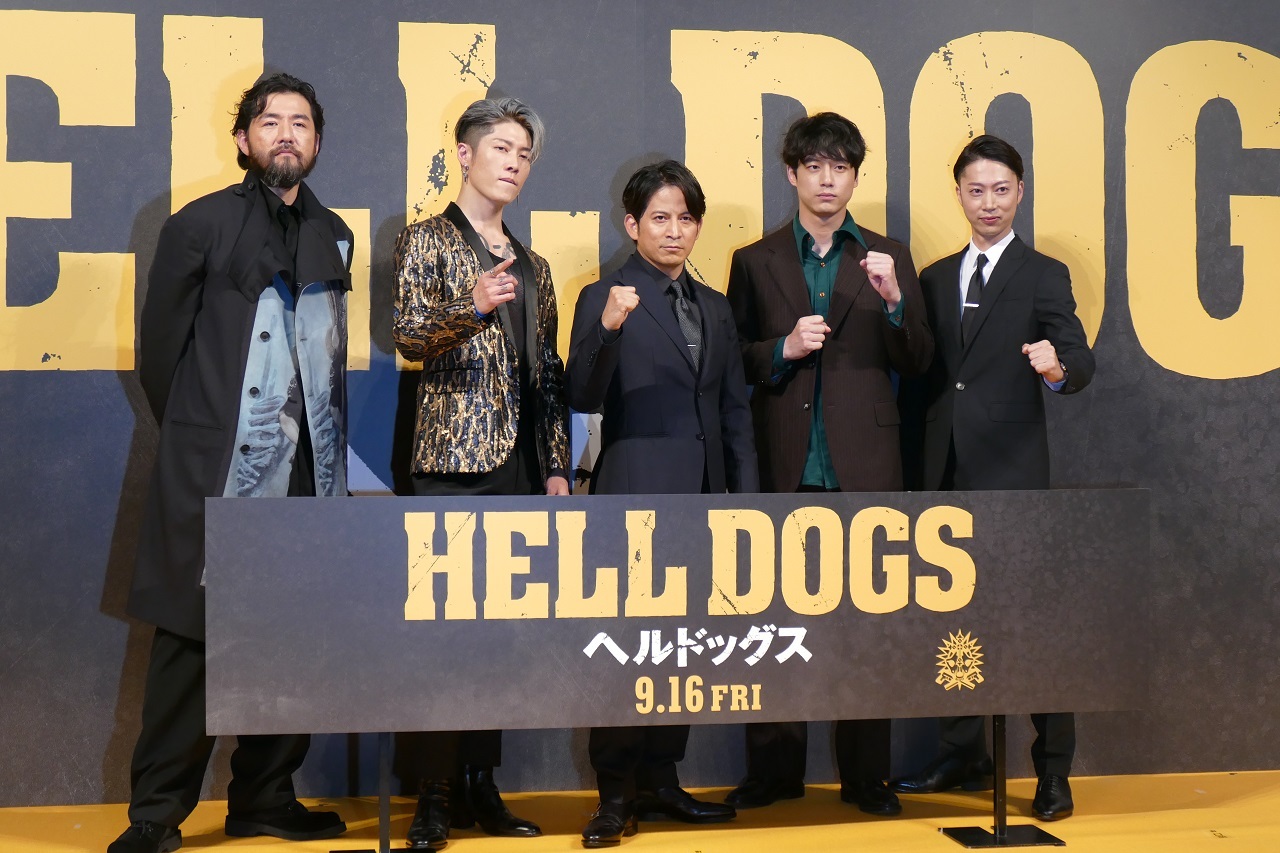 岡田准一が9月13日、都内で行われた主演作『ヘルドッグス』(原田眞人監督)の公開直前イベントに、共演する共演する坂口健太郎、MIYAVI、金田哲(はんにゃ)、吉原光夫とともに出席。「濃い人たちが出てい