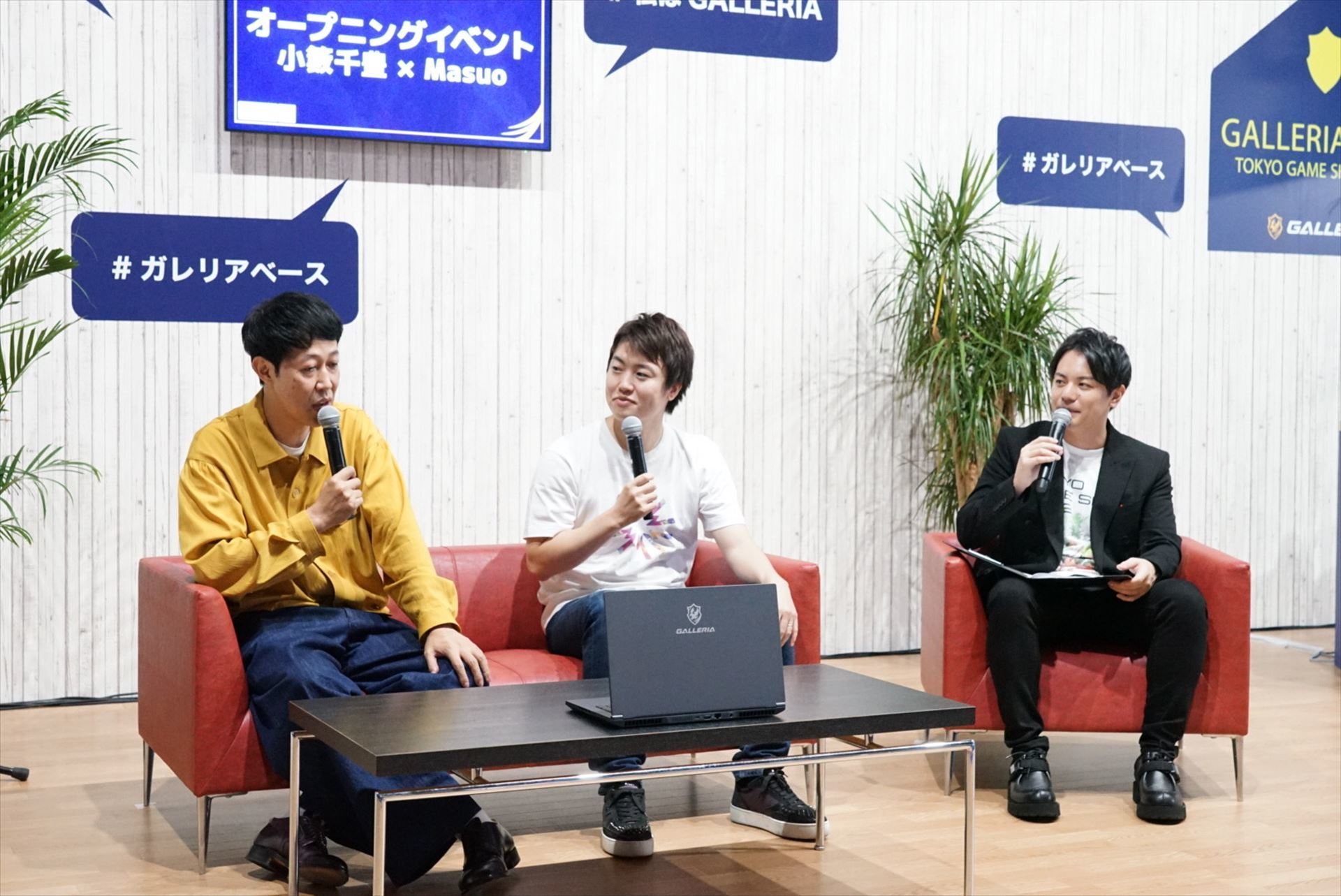 東京ゲームショウ2022の「GALLERIA」ブースには、ソファとeスポーツ対戦スペースが用意されたイベントスペース「GALLERIA BASE」があり、会期中は毎日ゲストを招いてさまざまなイベント