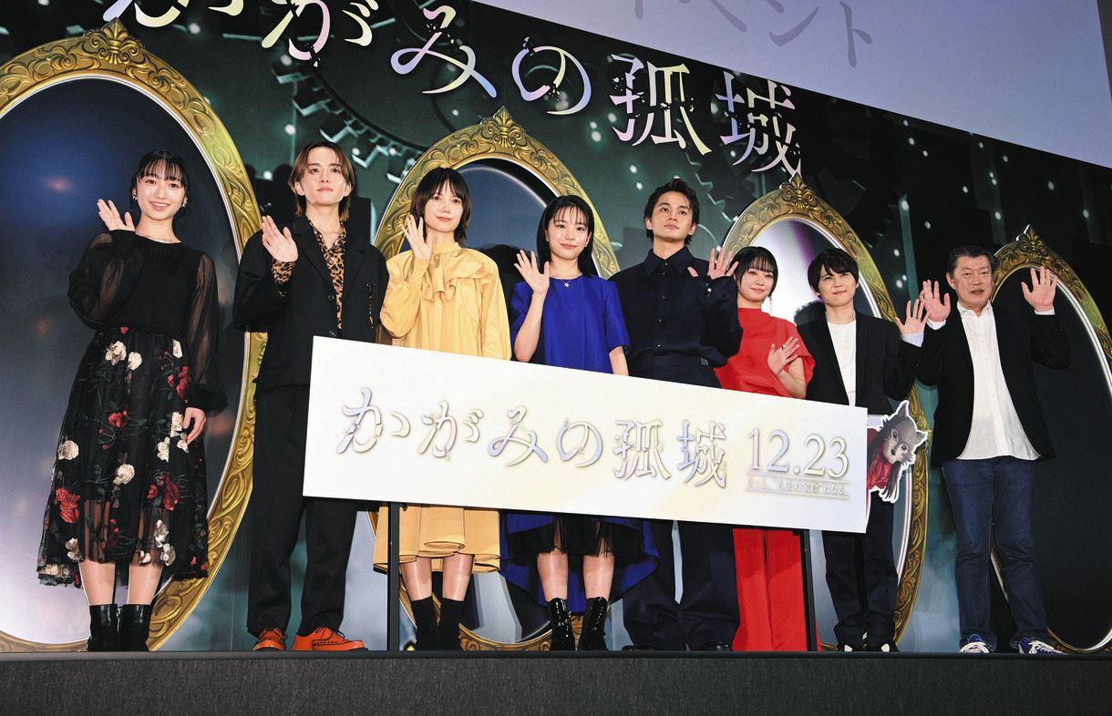 アニメ映画「かがみの孤城」(12月23日公開)のプレミアイベントが24日、東京・丸の内ピカデリーで行われ、声優として出演した女優の當真あみ(16)、北村匠海(25)、宮﨑あおい(36)らが出席した。