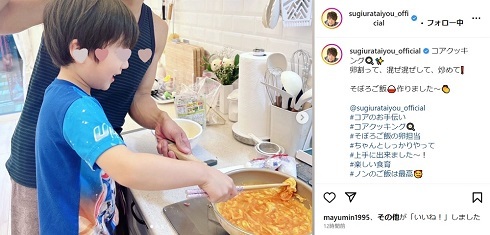 俳優の杉浦太陽さんが6月24日にInstagramを更新し、4歳三男・幸空(こあ)くんのクッキング姿を公開しました。 杉浦さんは、自身の付き添いで卵そぼろを作る幸空くんの写真とともに、「コアクッ