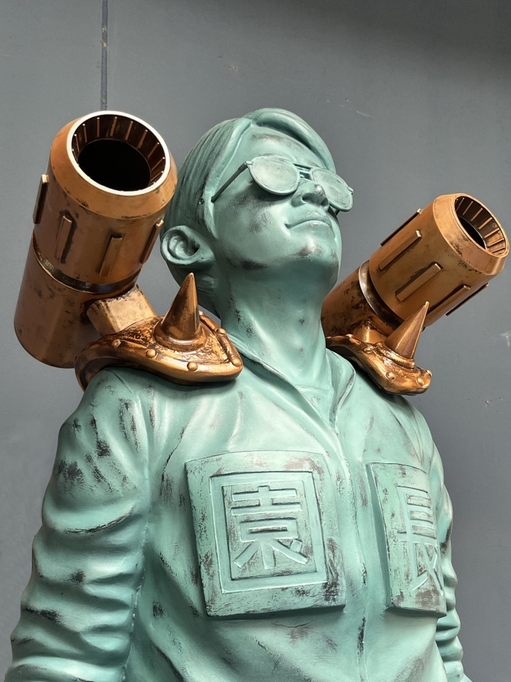 「ひらかたパーク」(大阪府枚方市)は、俳優・岡田准一の“超ひらパー兄さん”就任10周年にあたり、今年4月29日に「岡田園長像」を建立。7月15日からは夏バージョンとして、懐かしい装いとなった。