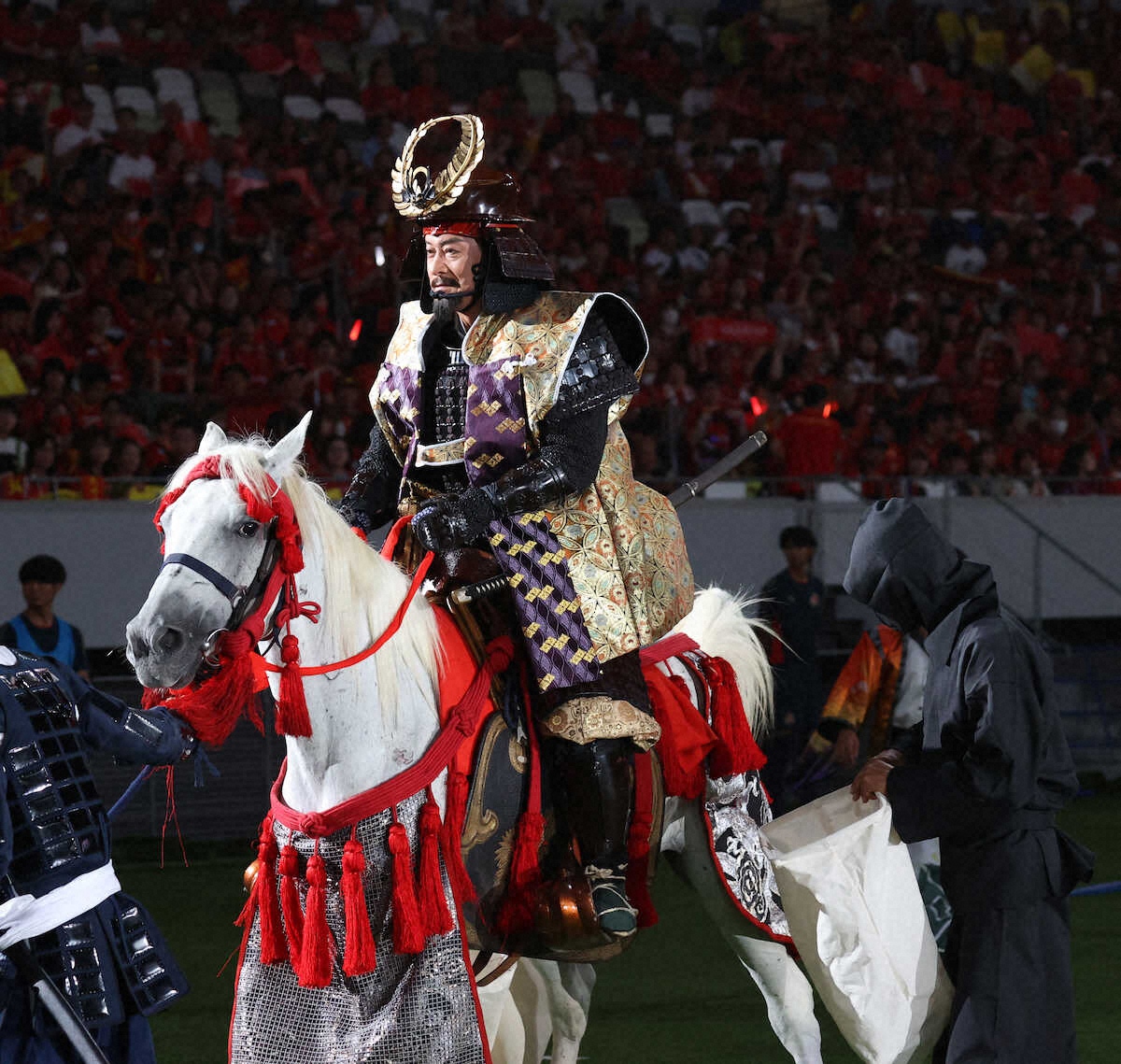 俳優の松平健(69)が5日、東京・国立競技場で行われたJ1リーグの名古屋―新潟戦にゲスト参加した。 キックオフ前にピッチ上で名古屋のマスコットたちと大ヒット曲の「マツケンサンバ2」を披露。集まっ