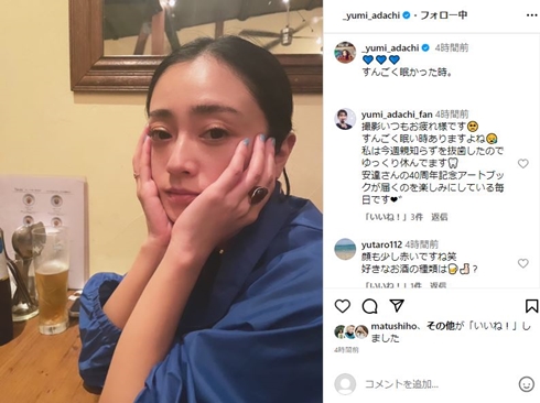 俳優の安達祐実さんが11月5日にInstagramを更新。お酒を飲んだのか顔が真っ赤でほろ酔い状態に見えるソロショットを公開しており、ファンからはほっこりする声が寄せられています。 ビールらしき