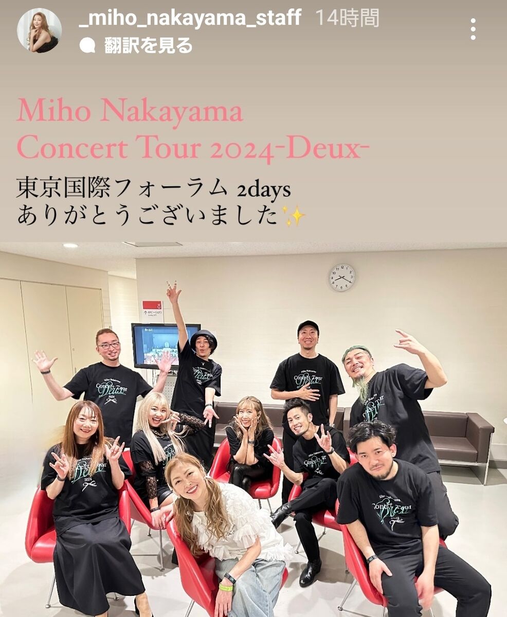 女優・中山美穂(54)のスタッフのインスタグラムが13日までに更新され、最新ショットが披露された。 「東京国際フォーラム 2daysありがとうございました」とつづり、スタッフらと記念撮影。中山は