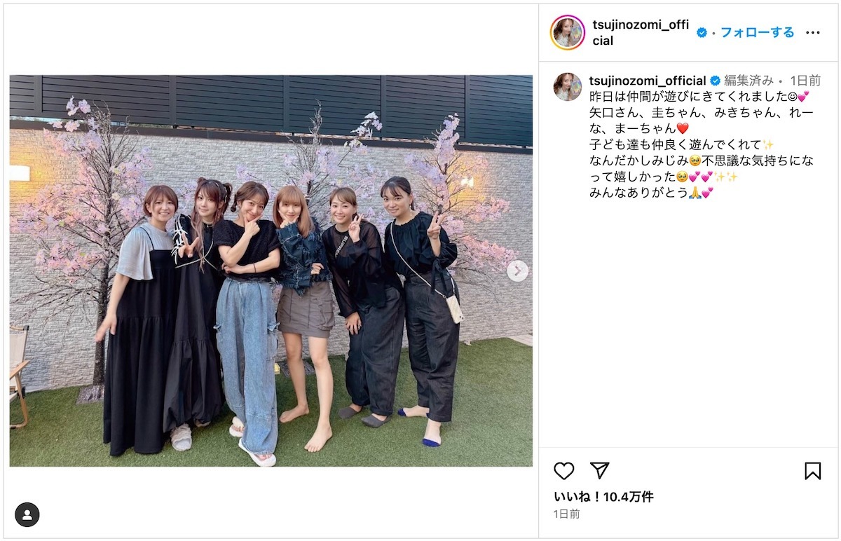 辻希美が、苦楽を共にしたモーニング娘。OGの保田圭、矢口真里、辻希美、田中れいな、佐藤優樹を自宅に招いたことをSNSにて報告。夫の杉浦太陽や子どもたちとの集合写真をそれぞれがInstagramに投稿