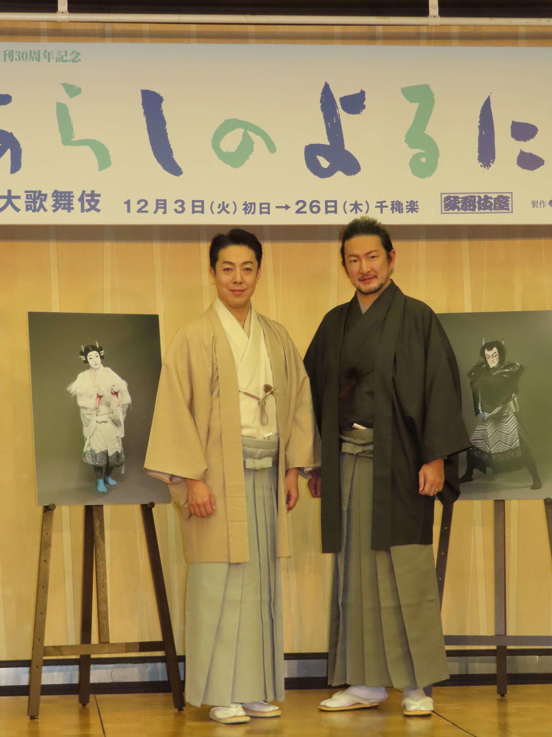 中村獅童(52)尾上菊之助(47)が8日、都内で、「十二月大歌舞伎」(同3~26日、東京・歌舞伎座)第1部「あらしのよるに」の取材会を行った。 絵本原作で、オオカミとヤギが友情を育む物語。15年