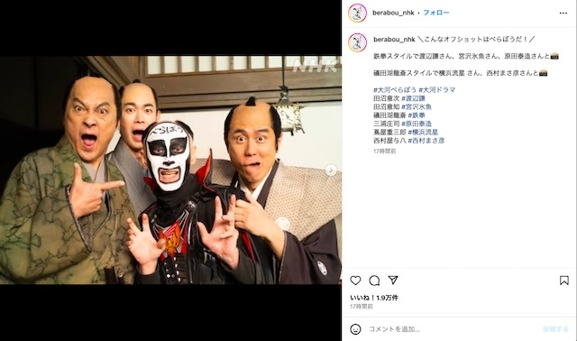 NHK大河ドラマ『べらぼう~蔦重栄華乃夢噺~』の公式Instagramにて、礒田湖龍斎役・鉄拳のオフショット写真が公開された。 横浜流星が主演を務めている大河ドラマ『べらぼう』。1月26日に放送