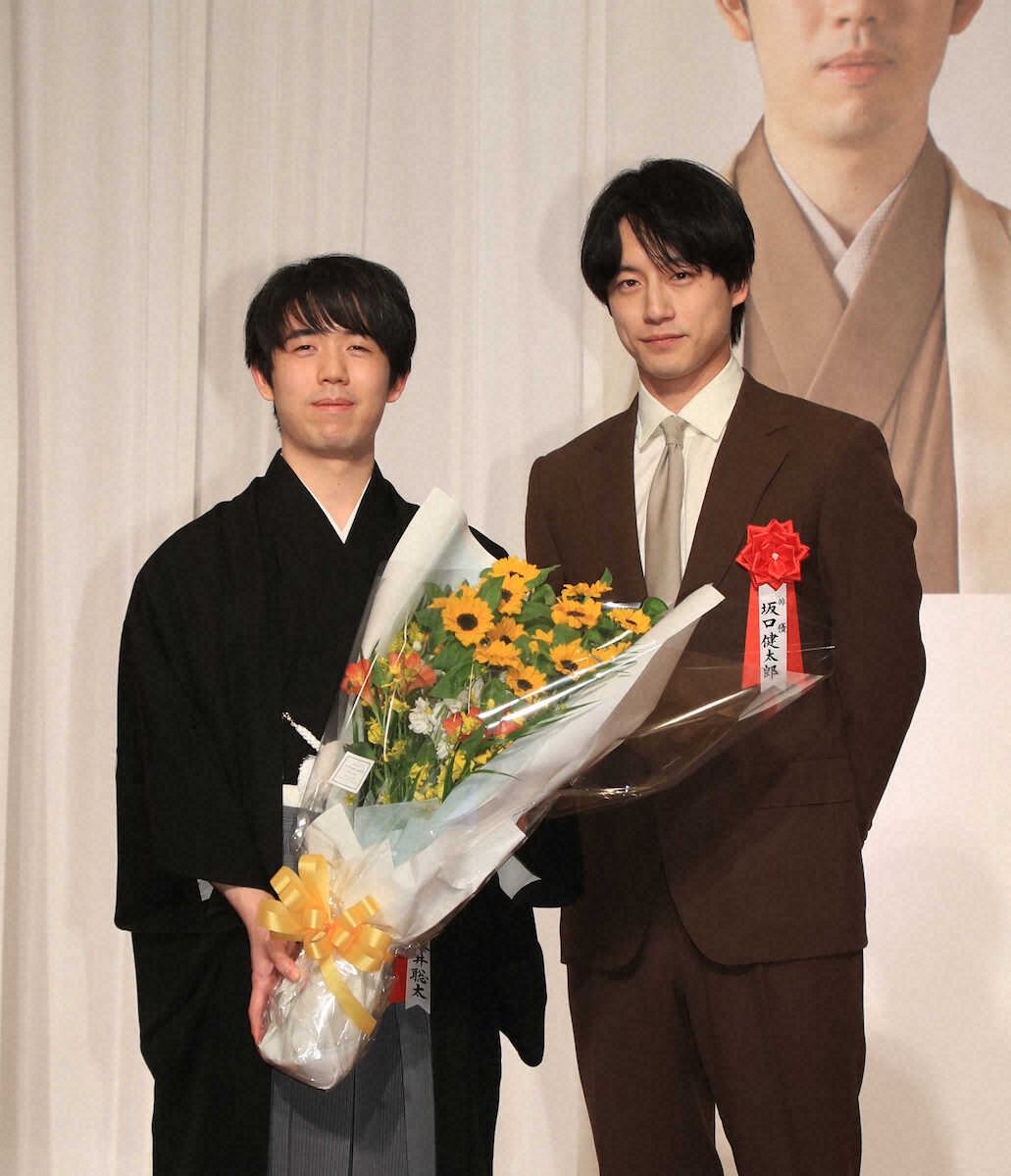 将棋の第37期竜王就位式が29日、東京都内で行われ、4連覇を達成した藤井聡太竜王(22)=王将含む7冠=に推挙状や賞金4400万円などが贈呈された。 就位式恒例の来賓祝辞は俳優の坂口健太郎(33